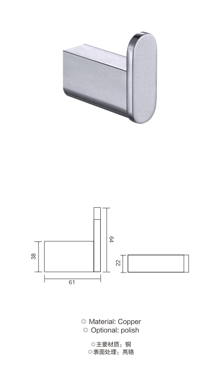不锈钢方底座衣钩