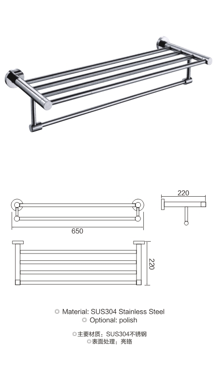 不锈钢方底座浴巾架