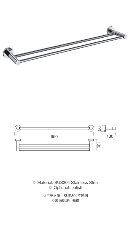 不锈钢圆底座双杆毛巾架