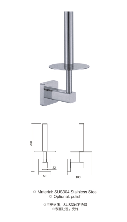 不锈钢方底座备用纸巾架