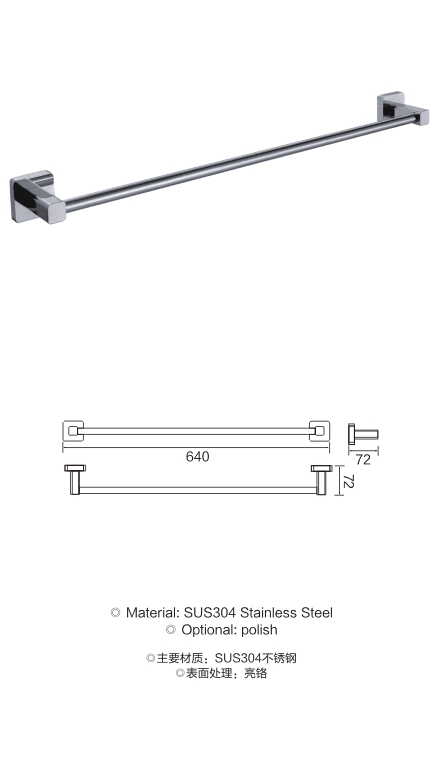 不锈钢方底座单杆毛巾架