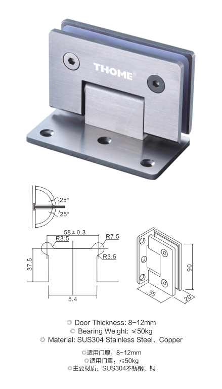 90°精铸浴室门夹(单边偏心)