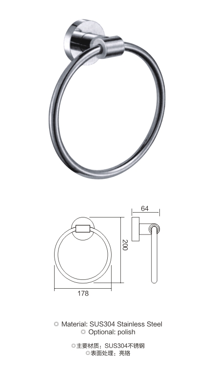 不锈钢圆底座毛巾环